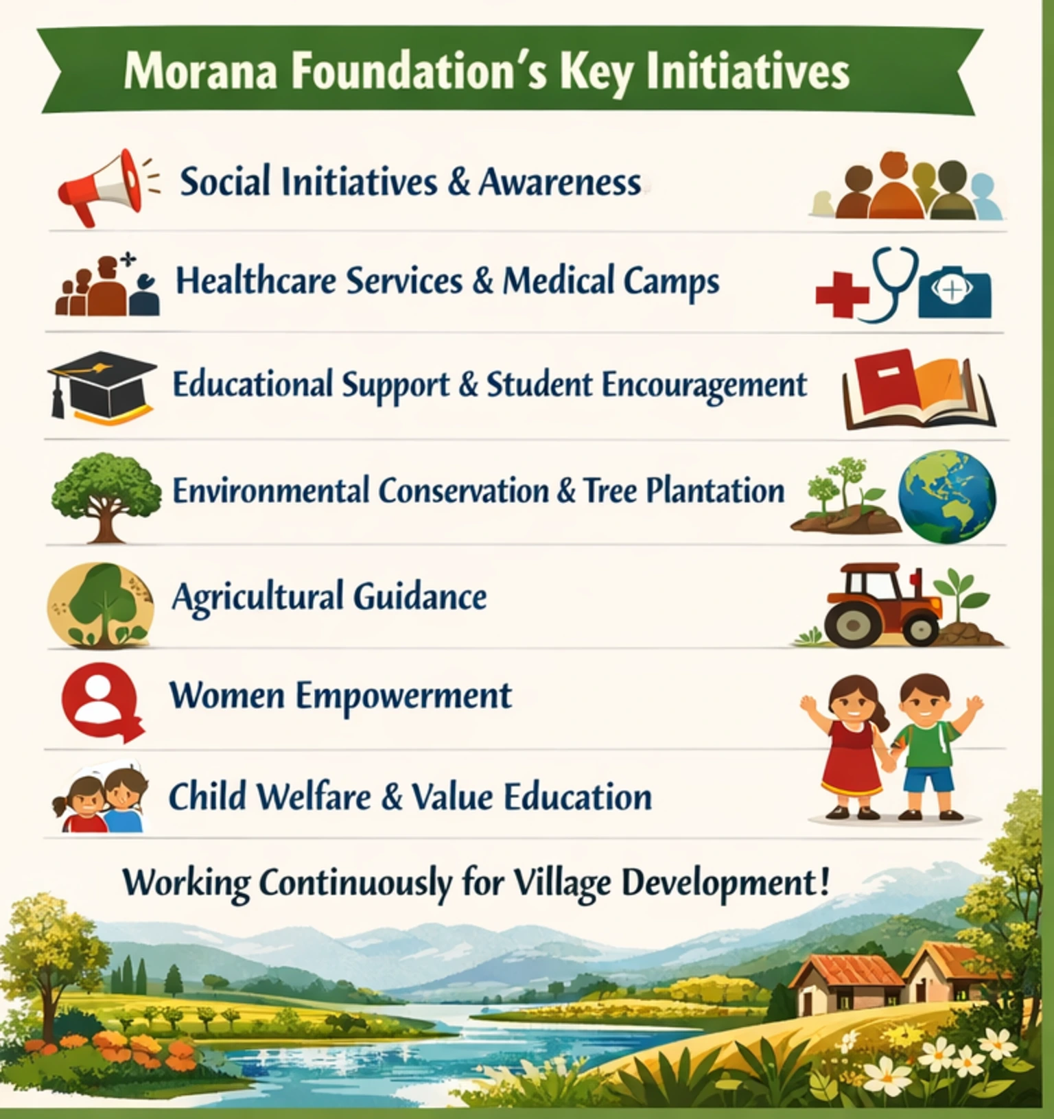 Inspired by the ideals of Swarajya envisioned by Chhatrapati Shivaji Maharaj, shaped through the values and guidance of Rajmata Jijau, Morana Foundation, Tadawale was established in the sacred land of the Sahyadri region. The name “Morana” is derived from the Morana River, which originates from the hills and valleys of Shirala Taluka. The farmers of this region depend on the waters of the Morana River for their agricultural prosperity and livelihood. Just as the origin of a river signifies the beginning of life, the foundation aims to become a starting point for social development, transformation, and new ideas. Morana Foundation was not established merely as an organization, but as a service-oriented system dedicated to addressing the needs of all sections of society. Its primary objective is to ensure that essential services and benefits, which often do not reach rural areas, are effectively delivered to every section of society.