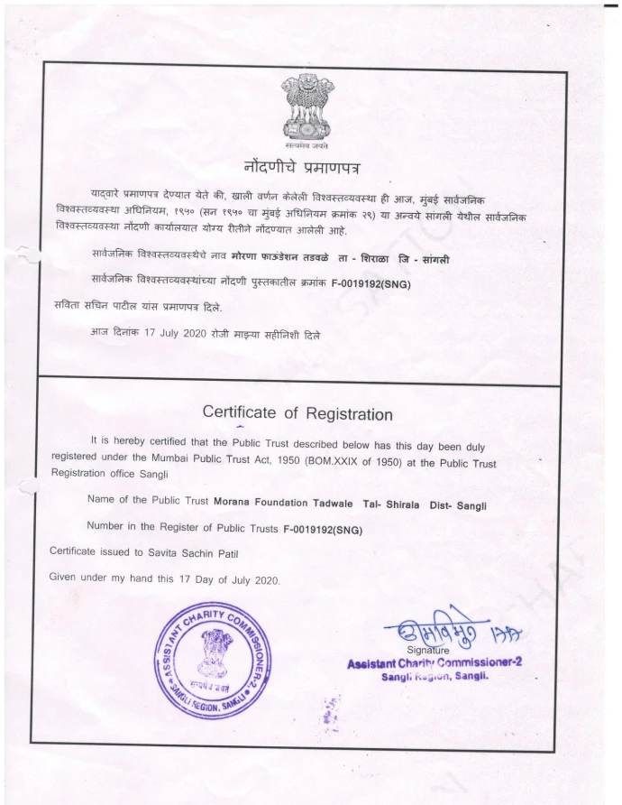 Nestled in the rugged ranges of the Sahyadri mountains, Shirala (Sangli district) revered as Nagbhoomi and sanctified by the footsteps of Yogi Gorakshanath and Chhatrapati Sambhaji Maharaj—is home to a small yet culturally rich village called Tadawale. In this village, people from all communities came together with a strong sense of social responsibility to establish the Morana Foundation in the year 2020.