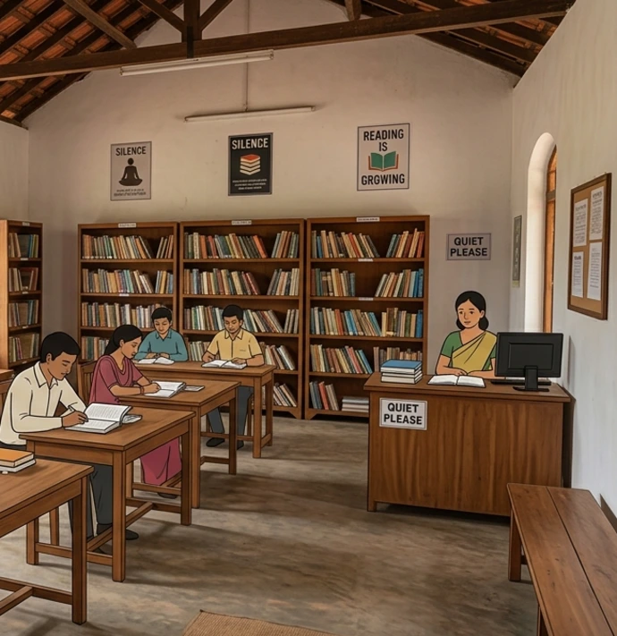The library will provide a spacious and quiet study area, along with books related to school curricula and competitive examinations, newspapers, magazines, and other educational materials. Special attention will be given to proper lighting, comfortable seating, cleanliness, and a disciplined environment, enabling students to study with better concentration and effectiveness.