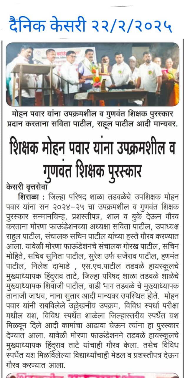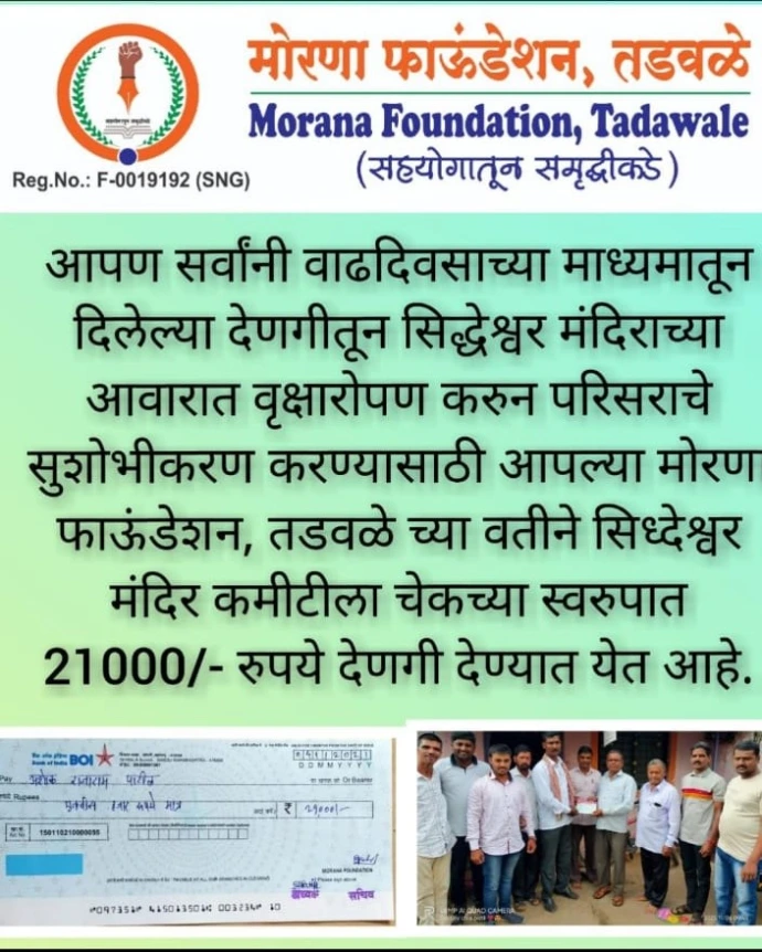 मोरणा फाउंडेशन, तडवळे च्या माध्यमातून सर्वसमाजाच्या सर्वांगीण विकासासाठी आजपर्यंत अनेक सामाजिक उपक्रम यशस्वीपणे राबविण्यात आले आहेत. या उपक्रमांमुळे सर्वसमाजाच्या सामाजिक, शैक्षणिक, आरोग्य, पर्यावरण व आर्थिक प्रगतीला नवी दिशा मिळत आहे.
